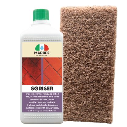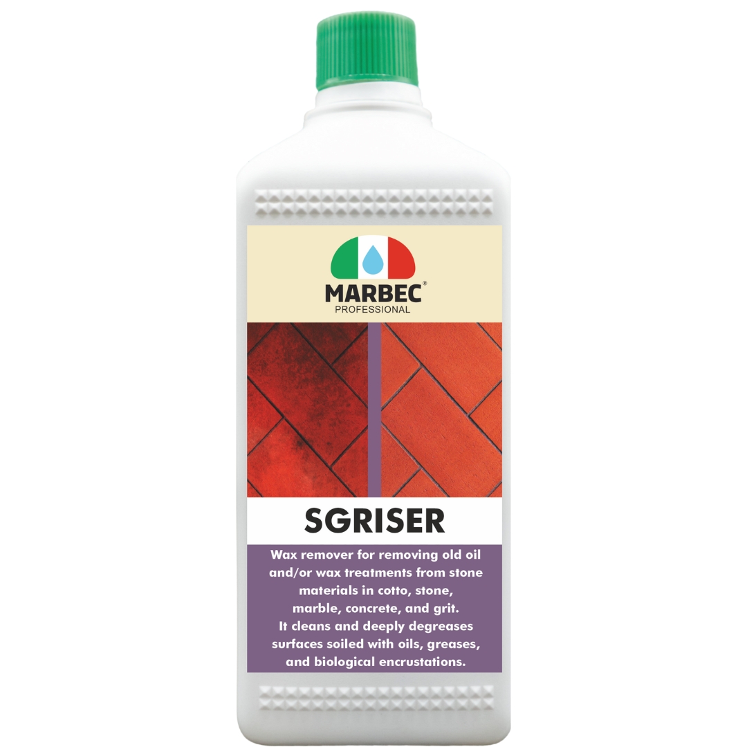 SGRISER is an alkaline detergent/solvent for strong degreasing dewaxing washing on all stone materials: cotto, stone, klinker, marble, concrete, grit, etc.