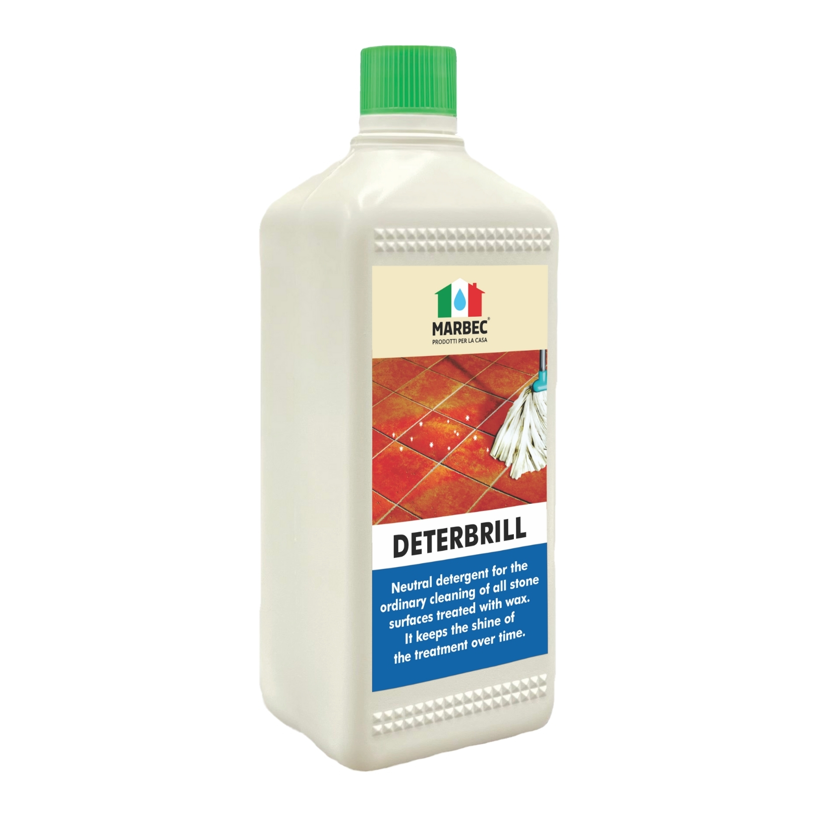 DETERBRILL is a neutral detergent concentrate not aggressive specific for stone material floors treated with wax, such as terracotta, natural stone, terrazzo, cement tiles, and cement agglomerates.