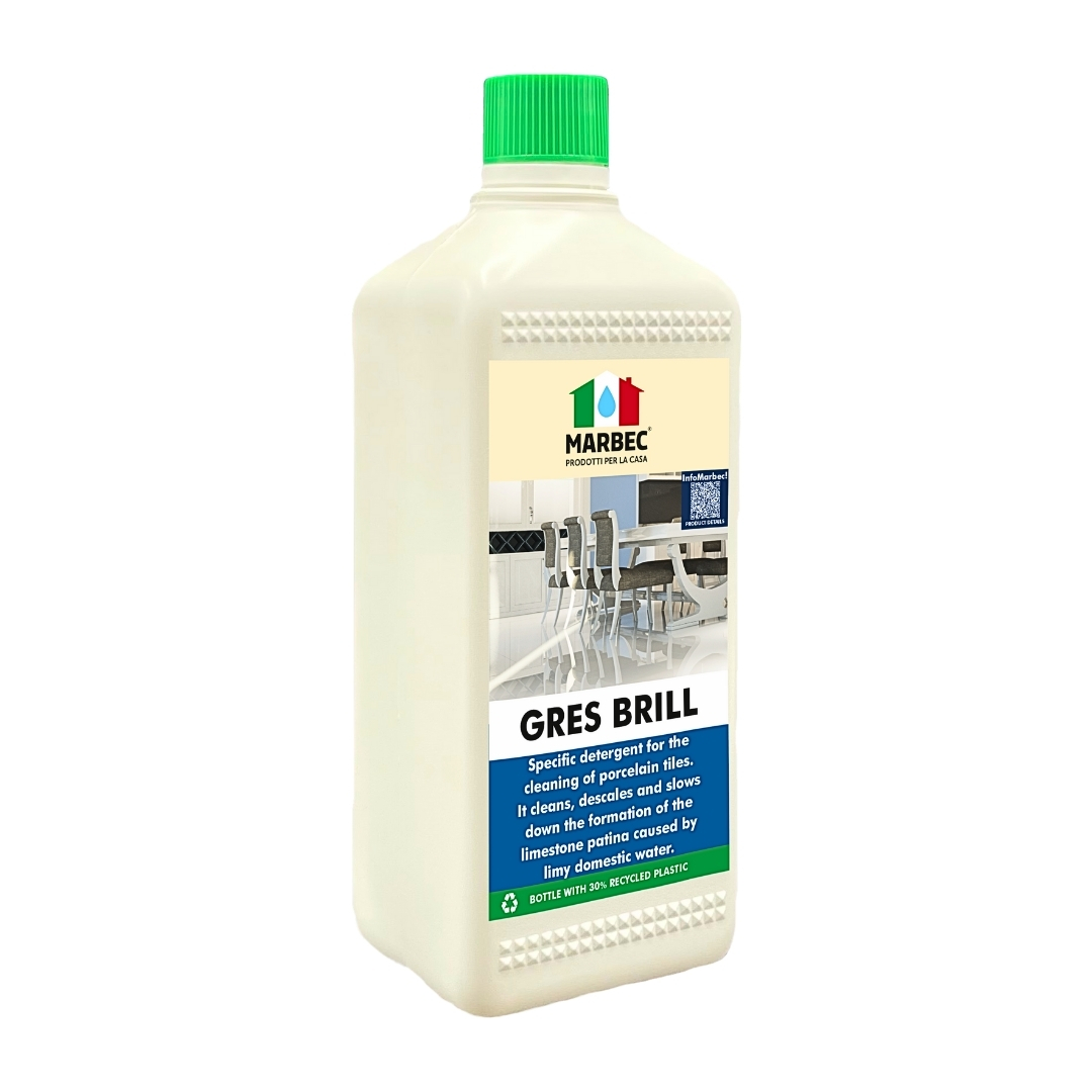GRES BRILL is the concentrated detergent specific for the ordinary cleaning of porcelain tiles surfaces. When used correctly, it removes halos and dirt and is particularly suitable for very calcareous water.