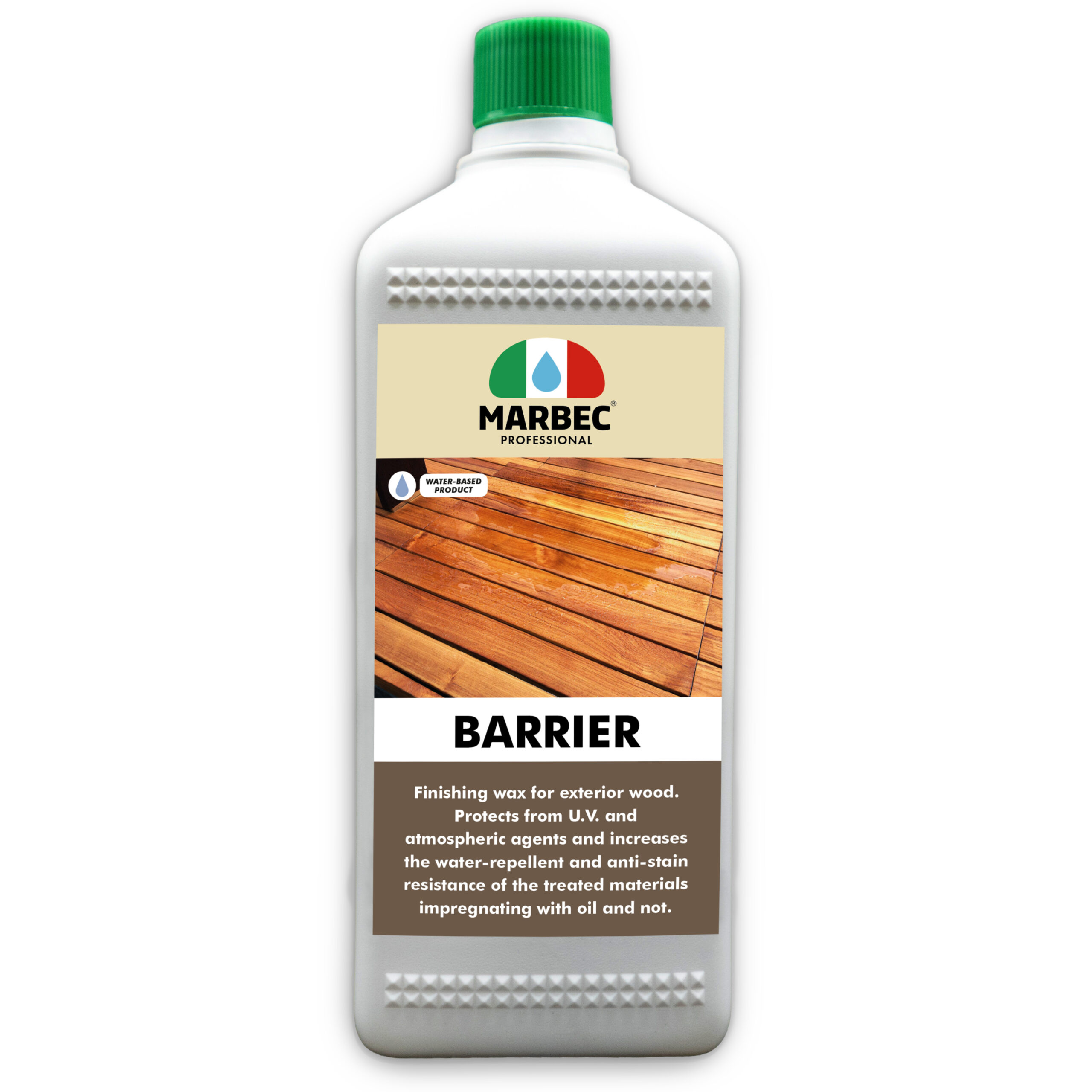 Because it increases the wood protection and above all protects the base impregnating agent, avoiding its rapid degradation. In fact, it is not essential to impregnate wooden surfaces treated with BARRIER every year. This is in order to avoid long and tiring re-impregnation work.